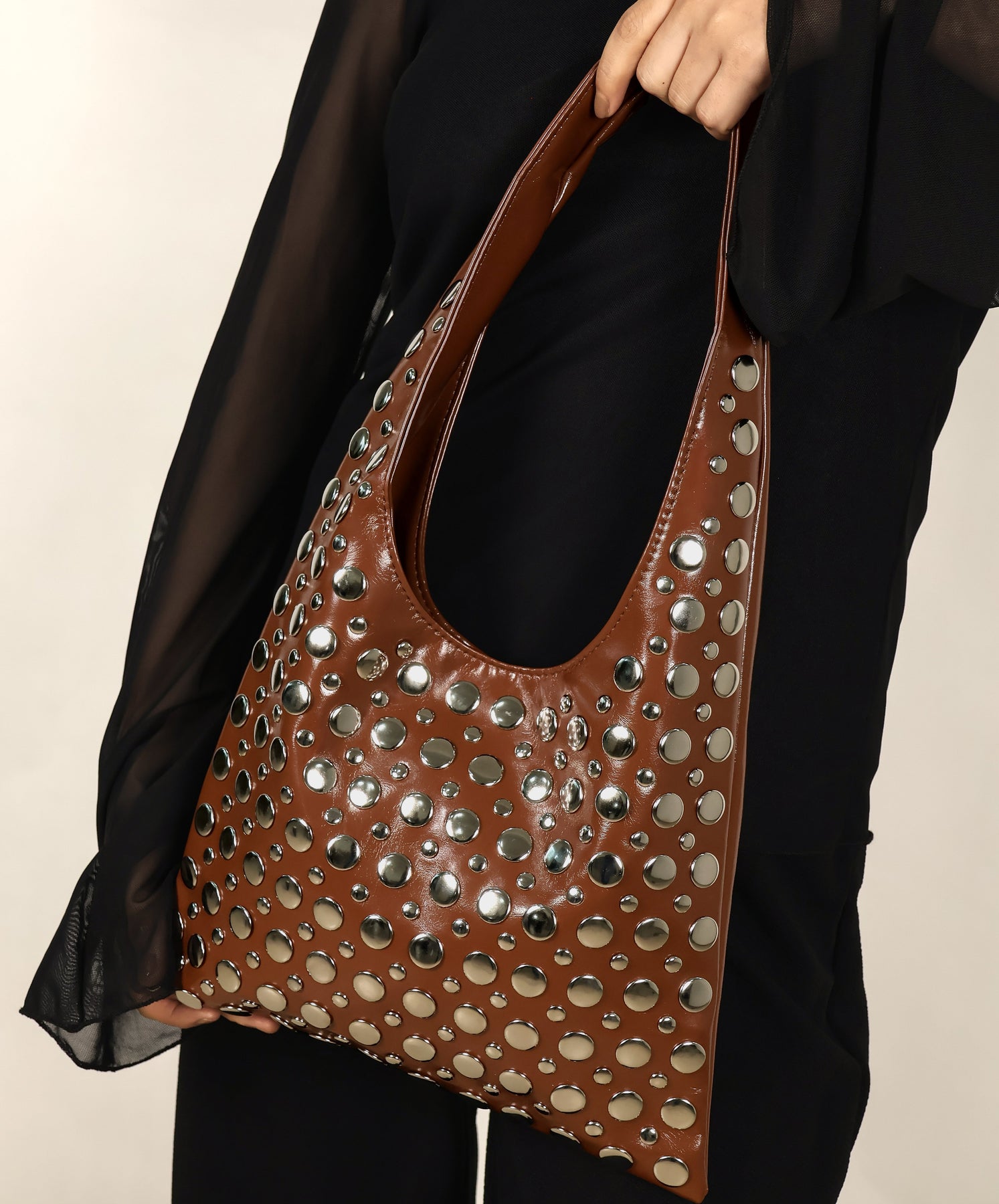 The silver stud detailing gives it a cool Y2K, street-style vibe, while the brown faux leather keeps it looking super classy and easy to style. It’s one of those bags you throw on with literally anything and instantly feel more put together.