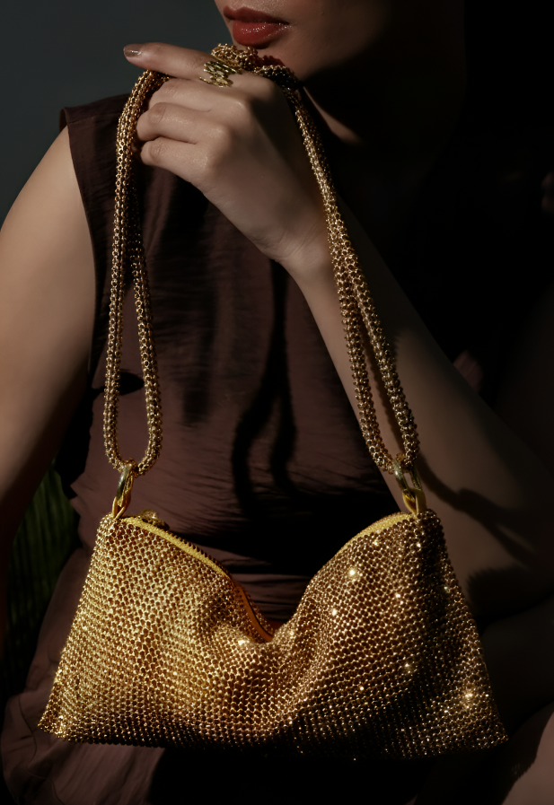 The Sparkle Shoulder Bag is that effortless statement piece you just throw on and suddenly your outfit looks planned. Covered in shimmering base, it catches the light every time you move, like, even a basic dress turns into a whole look.