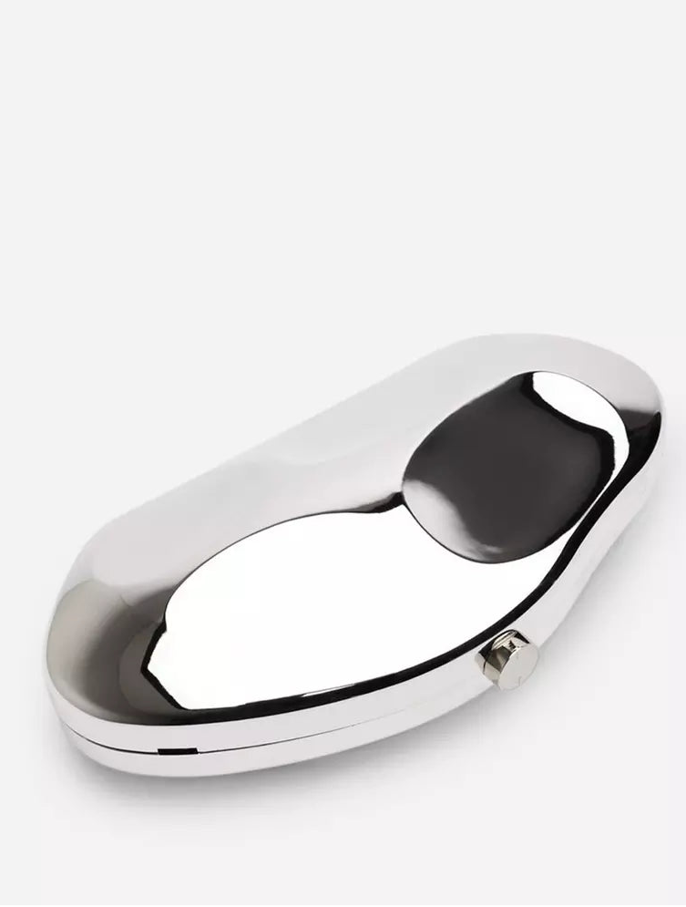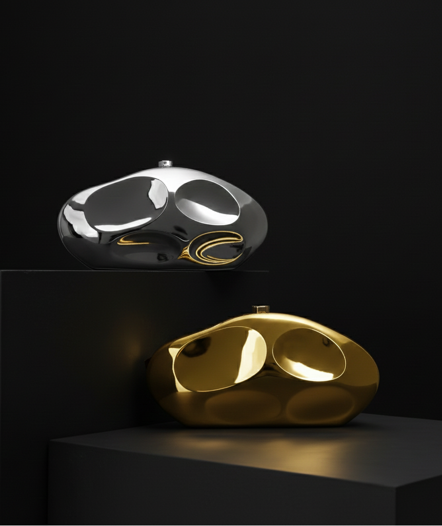 The smooth metallic finish and clean, sculpted shape make it feel super luxe without trying too hard. Carry it in your hand for that bold, confident look, or slip it into a sling bag with the detachable chain when you’re on the move. It’s lightweight, elegant, and surprisingly roomy, your phone, cards, cash, and lipstick fit easily.