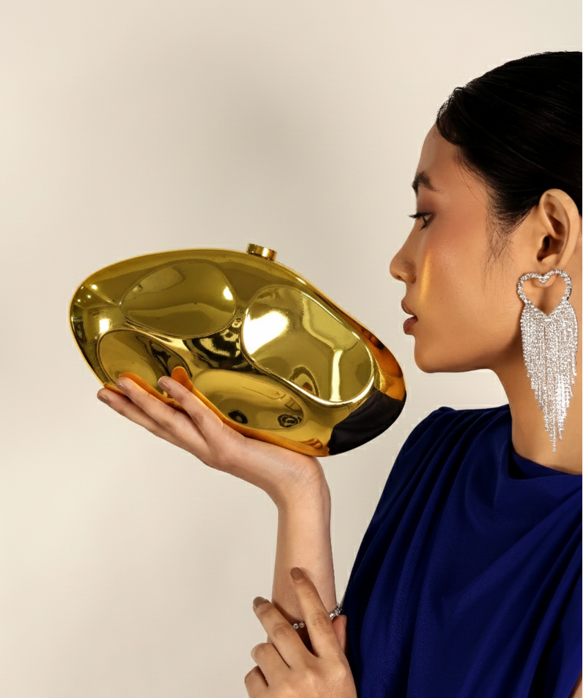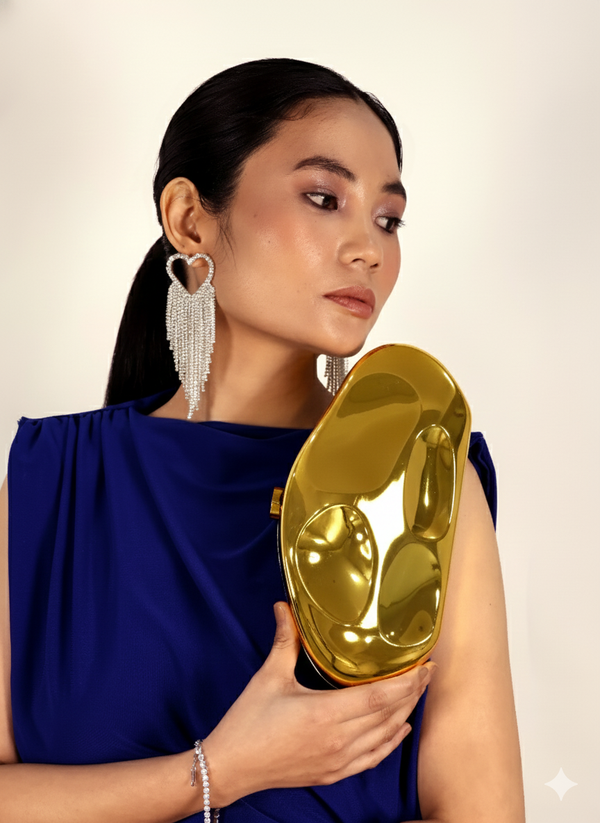 The Muse Clutch is that sleek metallic piece you reach for when the outfit is already good, but you want it to be unforgettable. It’s minimal, shiny, and catches the light in the best way. Trust me, people will ask about it.