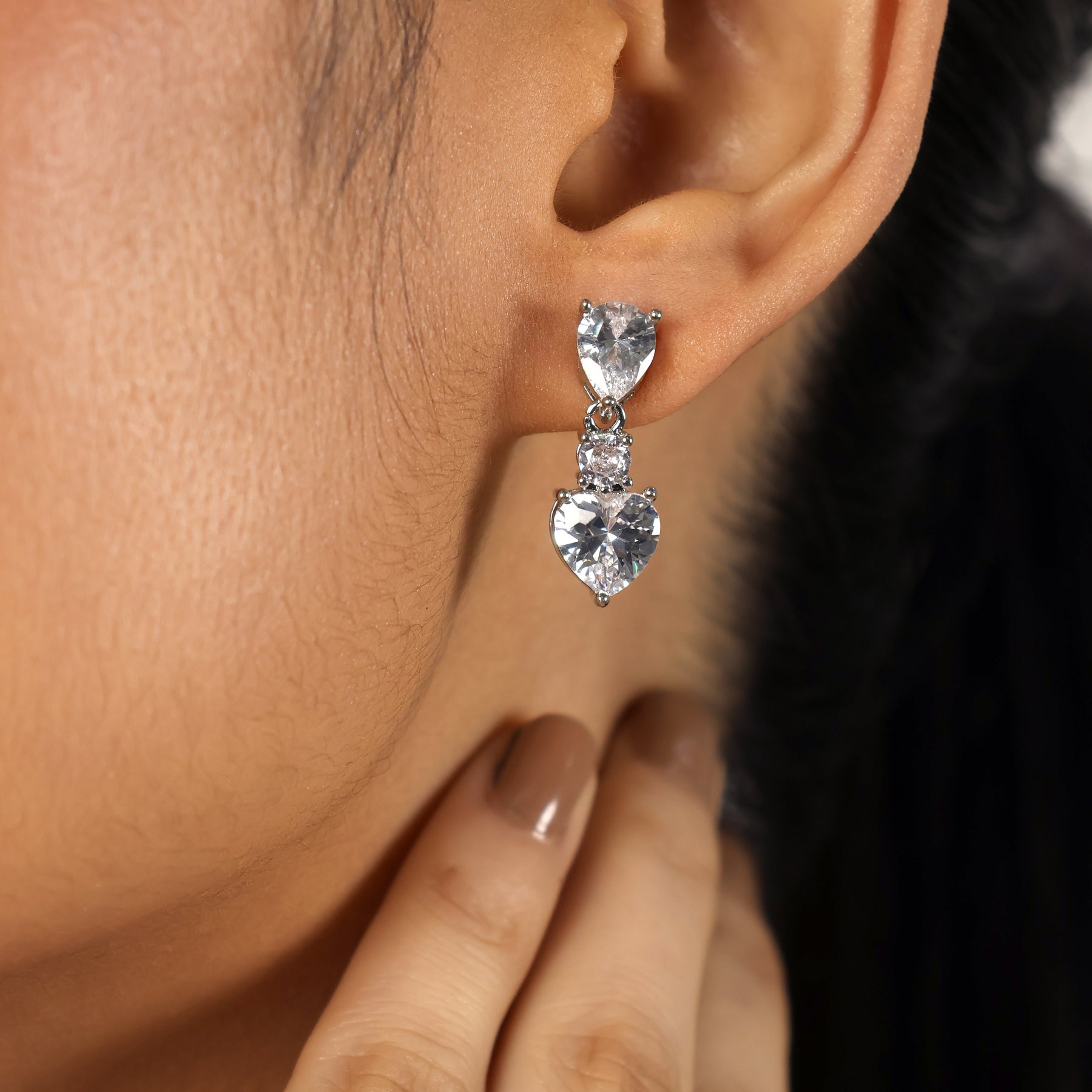 Our Heartbeat Earrings are designed to make hearts skip, literally. Featuring dazzling heart-shaped stones that shimmer with every move, these earrings are your go-to for soft glam, date nights, and main-character moments.