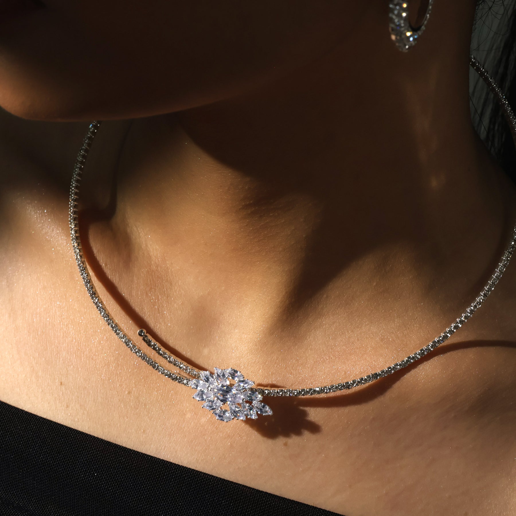 The Evelina Adjustable Tennis Chain Necklace is that one piece your wardrobe will keep reaching for. Featuring a sleek line of shimmering stones with a modern wrap-around silhouette, this necklace sits beautifully on the collarbone and instantly elevates any look.