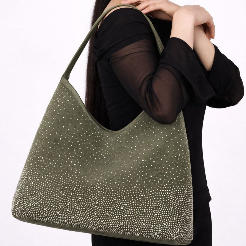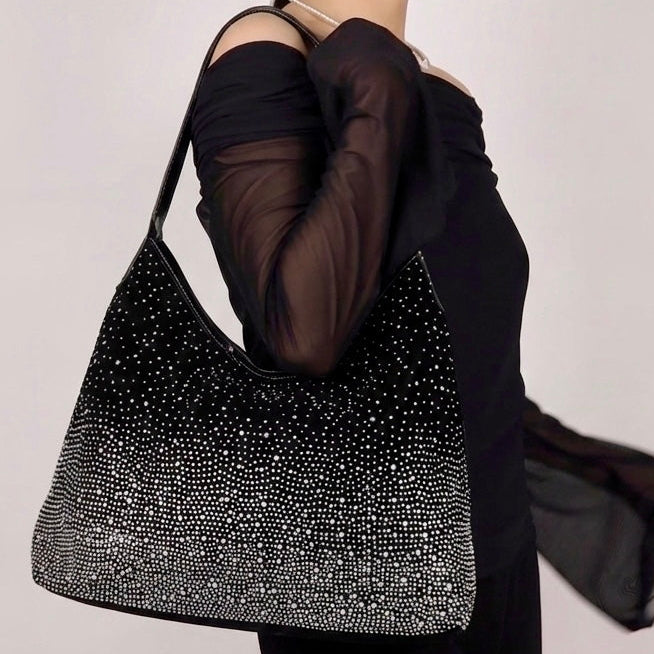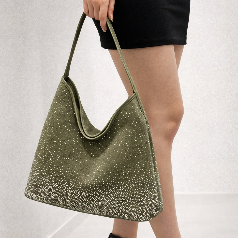 The canvas base makes it super easy to carry every day, but the rhinestone ombré detailing gives it that extra shine moment, subtle from far, stunning up close.